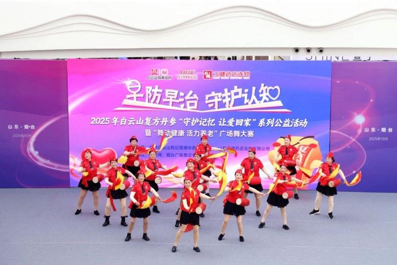 水母网10月26日讯(记者曲琬仪)26日下午,2025年白云山复方丹参“守护记忆 让爱回家”系列公益活动暨“舞动健康 活力养老”广场舞大赛在烟台万达广场举办,本次活动为老年人搭建了展示活力的舞台,倡导大家参加有益健康的体育锻炼,降低患心脑血管疾病和老年痴呆症等慢性病风险,传播健康理念。