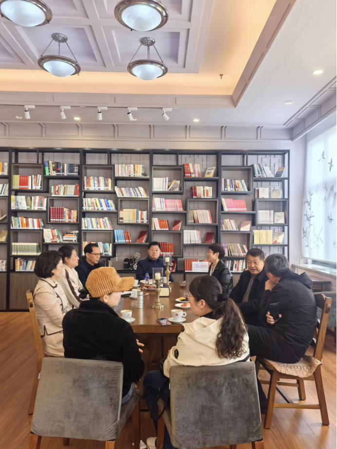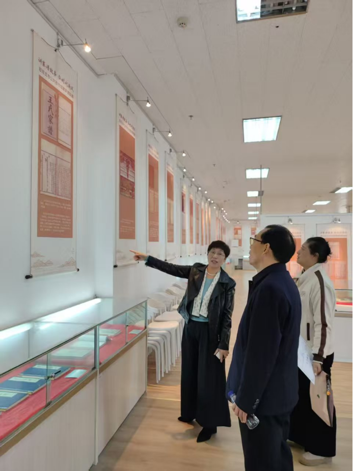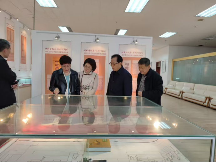 捐赠仪式结束后,宋馆长和邓会长等一行参观了“烟台市散文学会文献专架”并合影,留下了两个单位开创性合作的历史瞬间。随后又观看了《港城记忆 文脉丝路》《胶东抗战小说展暨<苦菜花>版本展》和《家谱寻根》等展览,并在拾光书咖一起畅聊了两个单位未来的合作前景。