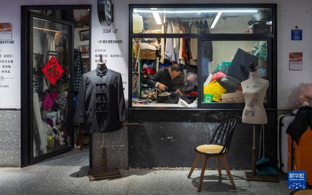 11月12日,上海市长宁区愚园路的小赵裁缝店店主在熨烫衣服。