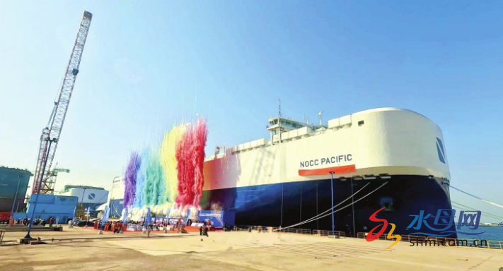 水母网11月15日讯(YMG全媒体记者 逄苗 通讯员 房欣第 摄影报道)11月14日上午,中集集团旗下中集来福士在龙口建造基地举行“NOCC PACIFIC”7000车位LNG双燃料汽车运输船命名仪式。该船是中集来福士为挪威船东Norwegian Car Carriers(NOCC)建造的首制汽车运输船,标志着双方合作取得重要里程碑进展,为NOCC船队升级和全球航运绿色转型注入新动力。