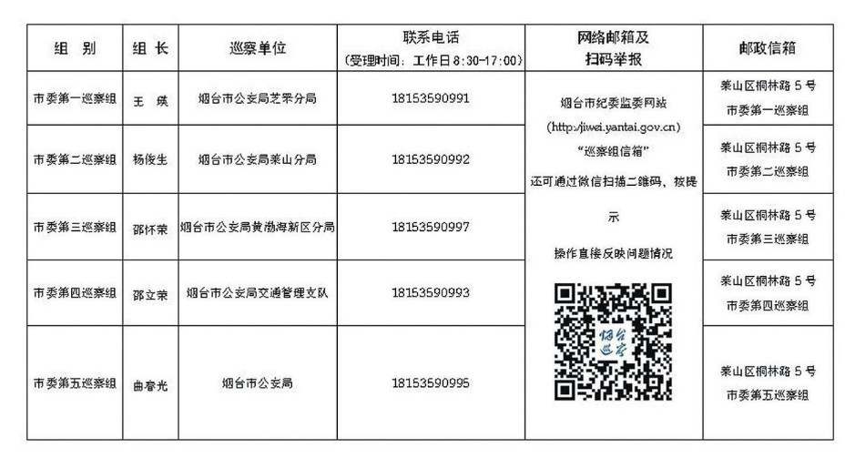 水母网11月22日讯 经烟台市委批准,十四届烟台市委第八轮巡察第二阶段安排5个巡察组,对烟台市公安局、烟台市公安局交通管理支队和芝罘分局、莱山分局、黄渤海新区分局开展巡察;福山区、牟平区、蓬莱区、海阳市、莱阳市、栖霞市、龙口市、招远市、莱州市、高新区、长岛综试区、昆嵛山保护区12个区市(功能区)党(工)委同步对各自区市(功能区)公安局(分局)开展联动巡察。截至11月21日,烟台市委巡察组已全部完成进驻。