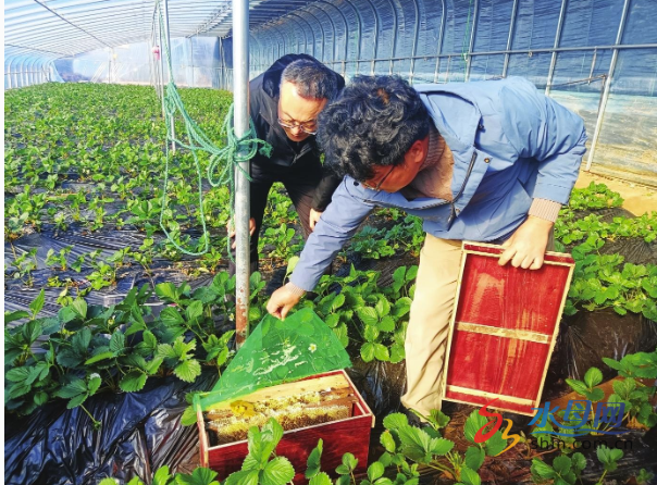 “快看,它腿上黄澄澄的就是花粉!”11月21日,在福山区的一处草莓大棚里,数十只正在采蜜的蜜蜂让在场的工作人员非常兴奋。