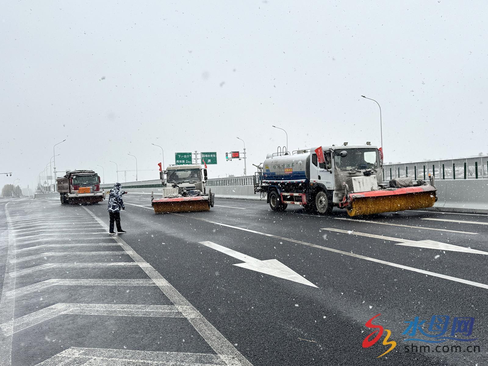 12月2日早5:30,山海快速路、德润快速路上便出现了清雪防滑车。“我们在滨海一线、山海快速路、德润快速路等路段,安排人员实时监控雪情,采取‘随下随清、雪停路净’模式,作业设备协同,队员不畏严寒、分工明确,有序清雪除冰。”蓝天智慧物业工作人员介绍,为了快速响应,12月1日下午5:00,清雪队伍、各类设备及物资已经在指定点位集结。此次准备了79台清雪设备,包括滚刷车、铲雪车、撒布机等;组建了5组应急小分队,配备了5台应急车,集结了120余名清雪队员,筑牢道路畅通“第一道防线”。
