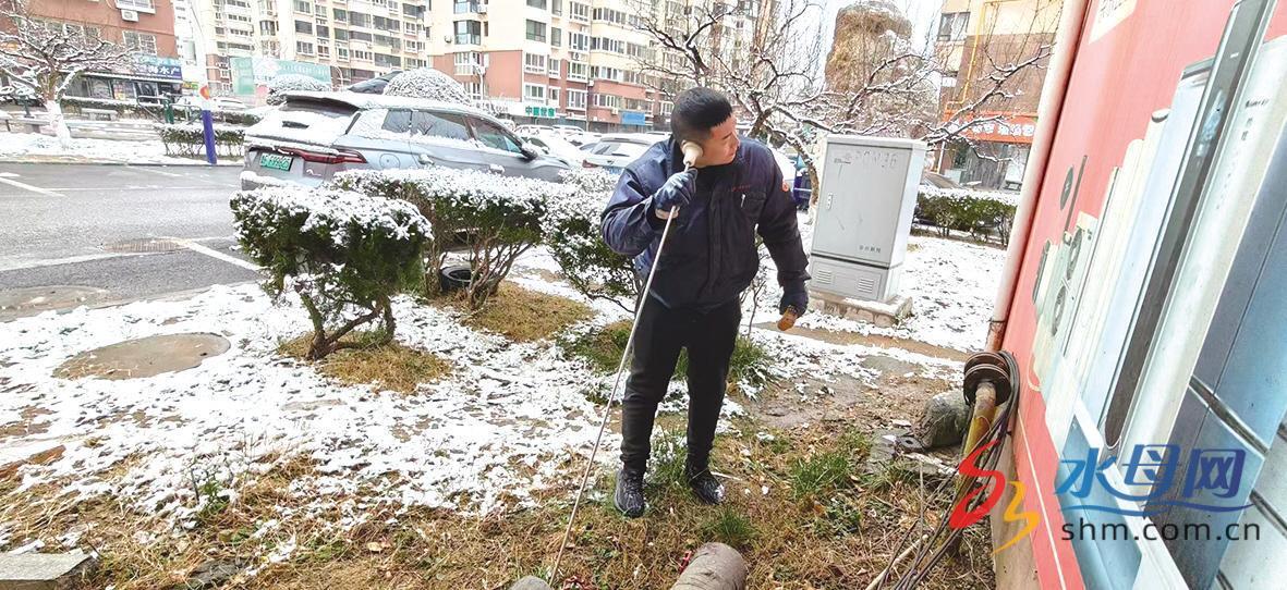 在户外,工作人员对市区供水管线管网设施进行24小时跟踪检修和管理,对暴露在外和掩埋较浅的供水设备、管网进行了紧急防冻处理,防止设施冻裂影响市民用水。
