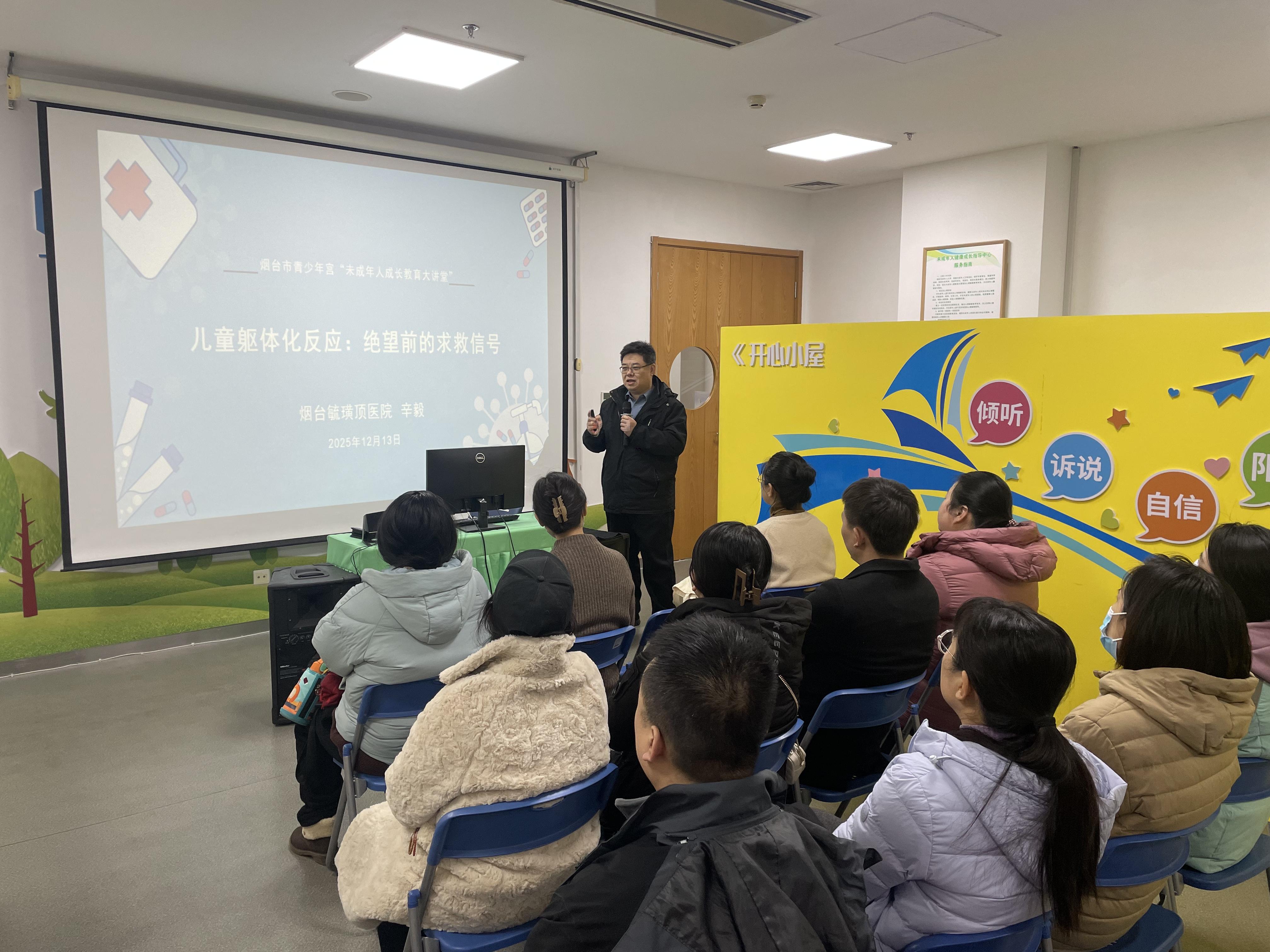 水母网12月15日讯(通讯员 李成修 崔方荣 记者 李波 初明珠)12月13日上午,烟台毓璜顶医院儿内一科主任、儿童重症监护室(PICU)主任辛毅走进烟台市青少年宫“未成年人健康成长指导中心”,以“儿童躯体化反应:绝望前的求救信号”为主题,为家长们带来一场兼具科学性与实用性的公益讲座。活动通过解析儿童心理压力与身体信号的深层关联,为亲子沟通提供了新视角,现场反响热烈,家长纷纷表示受益匪浅。