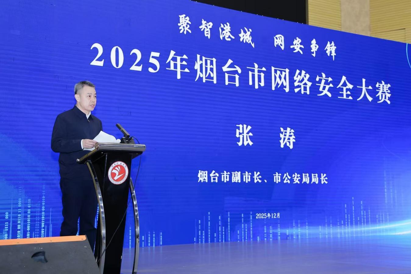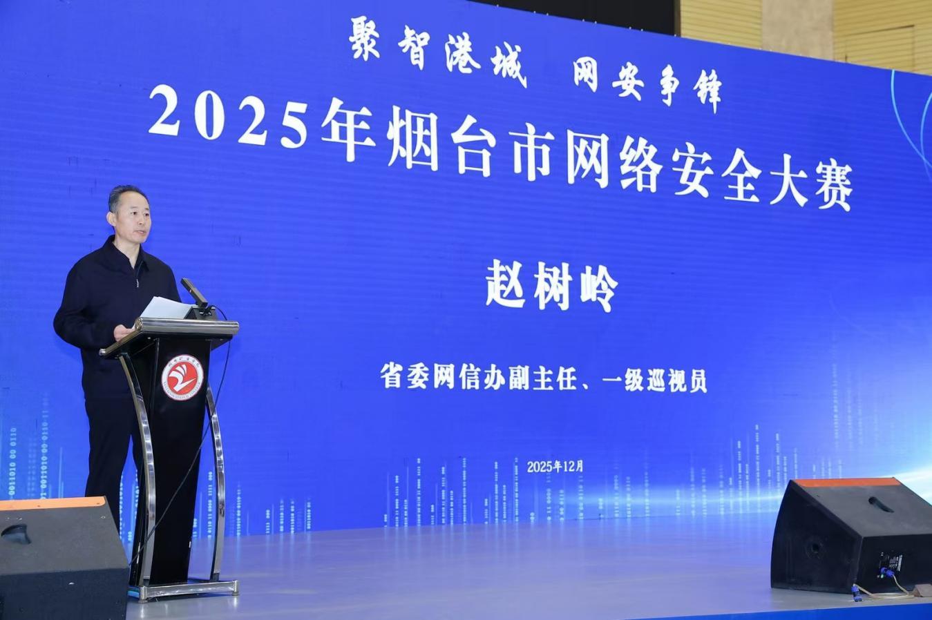 水母网讯 12月12日,2025年烟台市网络安全比赛在烟台职业学院举行。山东省委网信办副主任、一级巡视员赵树岭,烟台市副市长、市公安局局长张涛出席活动。