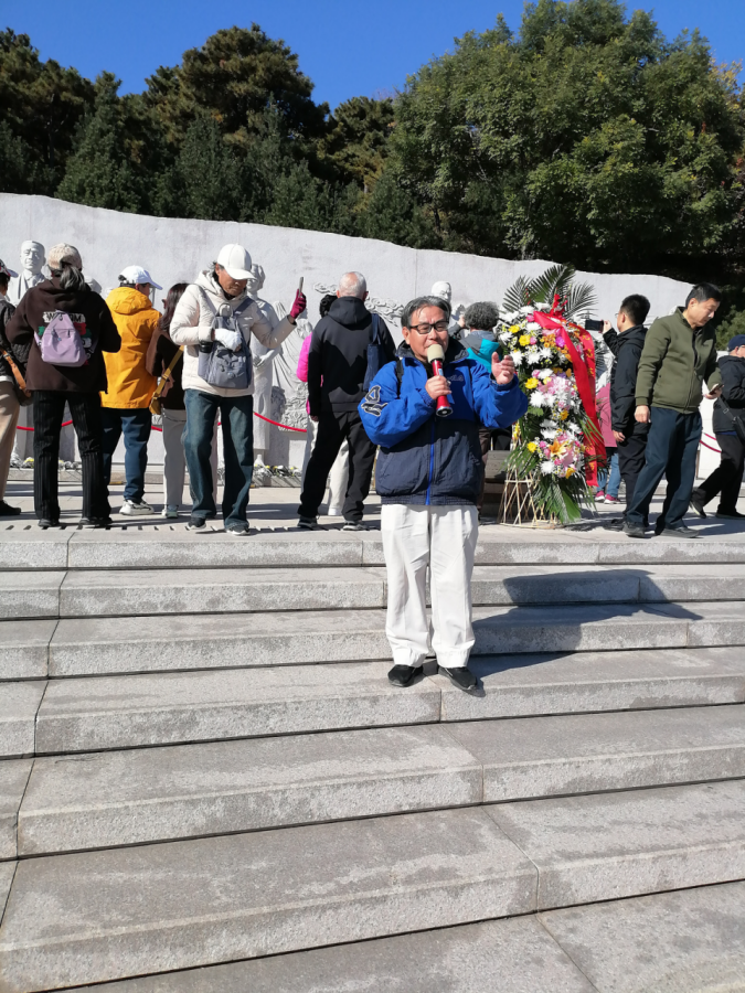 忽然,一阵清脆却撕心的嚎啕划破广场的宁静。那是个四五岁的孩童,许是被周遭凝重的气氛裹挟,许是本能地感知到空气中的悲恸,趴在母亲肩头放声大哭。这份不掺杂质的共情,像一颗石子投入心湖,让在场者的眼眶尽数发热。哭声渐歇时,空气似也放缓了流动,将这份纯粹的悲痛轻轻收拢;正当心绪翻涌,广场另一侧传来整齐洪亮的誓言——两支来自基层党支部的入党宣誓队伍相继集结,胸前的党徽在阳光下熠熠生辉。“我志愿加入中国共产党……”铿锵的誓词穿透风的阻隔,与松柏的轻吟相融,每一个字都饱含着对信仰的坚守,看得我心潮澎湃,忍不住握紧了手中的鲜花。