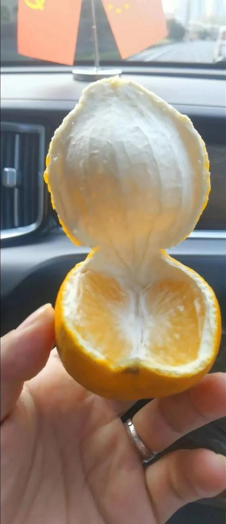 直到嫂子病情稳定,侄子也能接手照顾,我们才暂时离开医院。去看望岳母的路上,我又在车里看见它们——一个已经软烂,另一颗却金黄圆满,静静散发着温柔的光泽。舍不得自己一人吃,等夫人上车,一起剥开。我随手拍了张“橘子”的特写照片,留存这不一样的记忆。