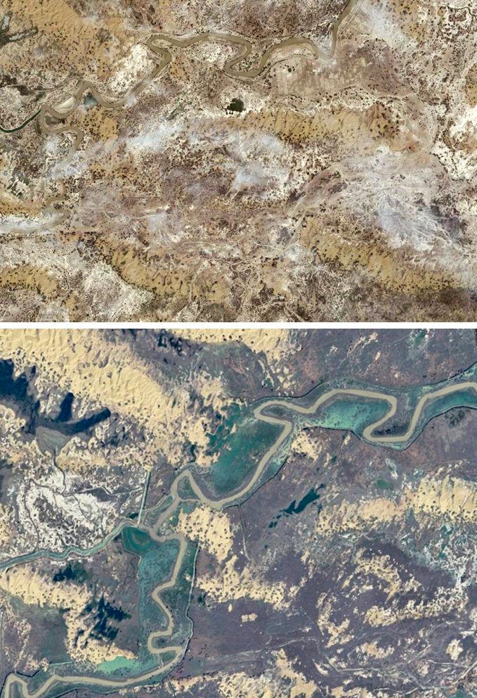 自2000年开始,通过一系列水利枢纽工程建设、河道疏浚和水源调度,塔里木河已累计进行26次生态输水,累积下泄生态水超100亿立方米,结束了下游河道和台特玛湖干涸近30年的历史。中国科学院新疆生态与地理研究所监测表明,塔里木河下游植被物种由17种增加到46种,河道两岸黄羊、狐狸、白鹭、野鸭等野生动物种群显著恢复。