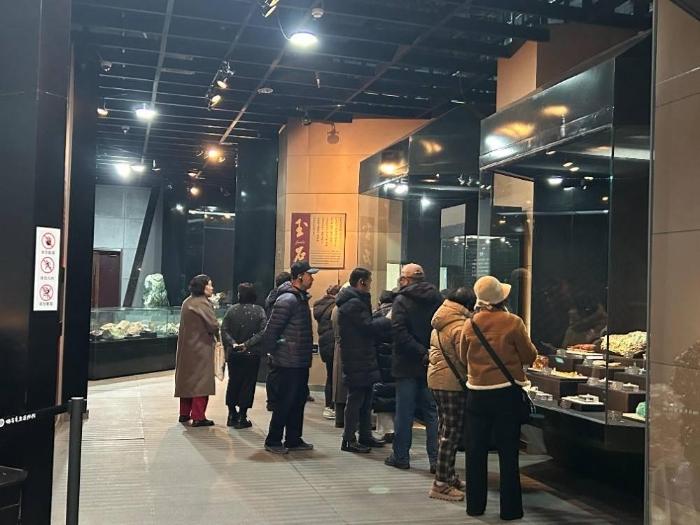 观展之余,在烟台自然博物馆关月洁主任的热情引导下,会员们移步黄金厅、矿产资源厅与根雕艺术馆,开启了一场自然瑰宝与人文智慧的邂逅之旅。黄金厅内,流光溢彩的展品串联起烟台从古代采金到现代产业的千年变迁;矿产资源厅中,琳琅满目的矿石标本静静陈列,见证着胶东大地的物华天宝;根雕艺术馆里,一件件作品化腐朽为神奇,将自然造化的鬼斧神工与匠人匠心的精雕细琢演绎到极致。会员们或俯身观察矿石的结晶纹理,或凝神品味根雕的神态气韵,不时交流见解,感慨这座博物馆既是展示本土自然与人文瑰宝的殿堂,更是普及科学知识、传承地域文化的重要阵地,其精心的布展、丰富的馆藏与贴心的服务,为市民搭建起高品质的文化交流平台。