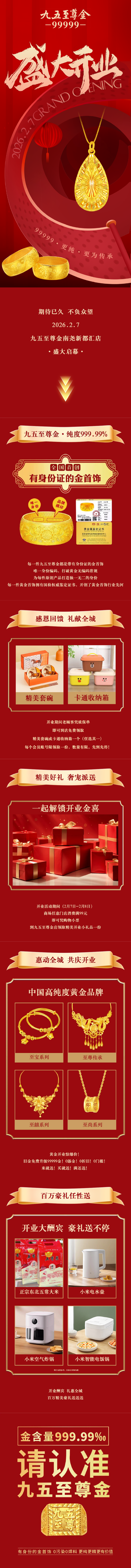 【盛大开业】2月7日九五至尊金新都汇店荣耀启幕!旧金免费升级99999金!买黄金珠宝送品牌家电!
