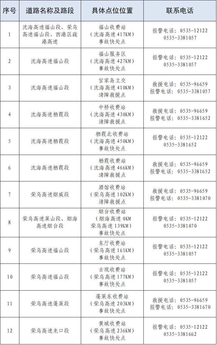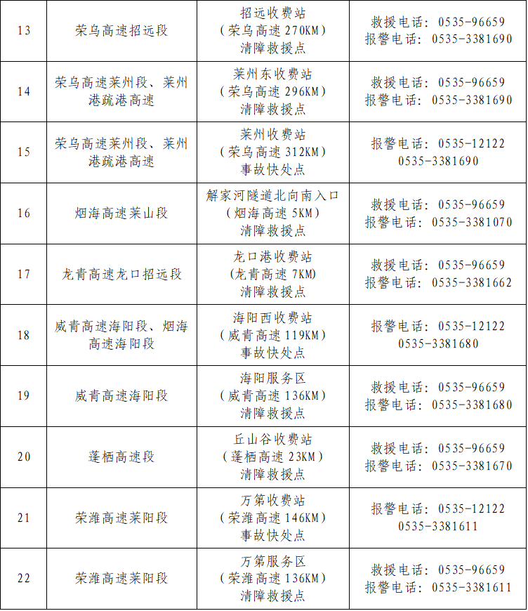 22处!烟台高速公路事故快处点及清障救援点已就位→