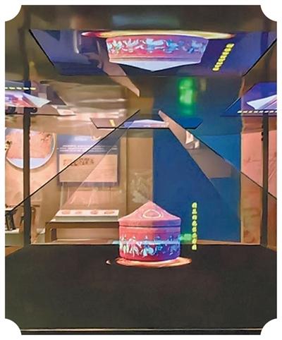 在3D全息投影柜展出的龟兹舍利盒。王红丽摄