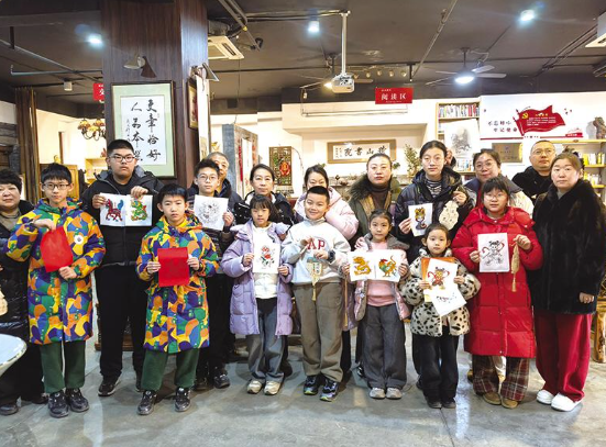 在专业老师的悉心指导下,孩子们以棕刷为笔,以彩墨为媒,让一幅幅憨态可掬的“年画娃娃”、矫健昂扬的“骏马图”跃然纸上。活动中,父母与孩子共同完成一幅拓印作品的过程,既培养了孩子的动手能力,又增添了亲子互动的乐趣。