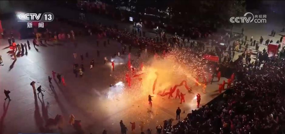 夜幕降临,极具陕南特色的烧火龙表演震撼登场。舞龙者迎着飞溅的焰火辗转腾挪、穿梭起舞。此外,打铁花、火壶等表演也轮番亮相,让市民和游客在绚烂光影中感受传统民俗的别样魅力。