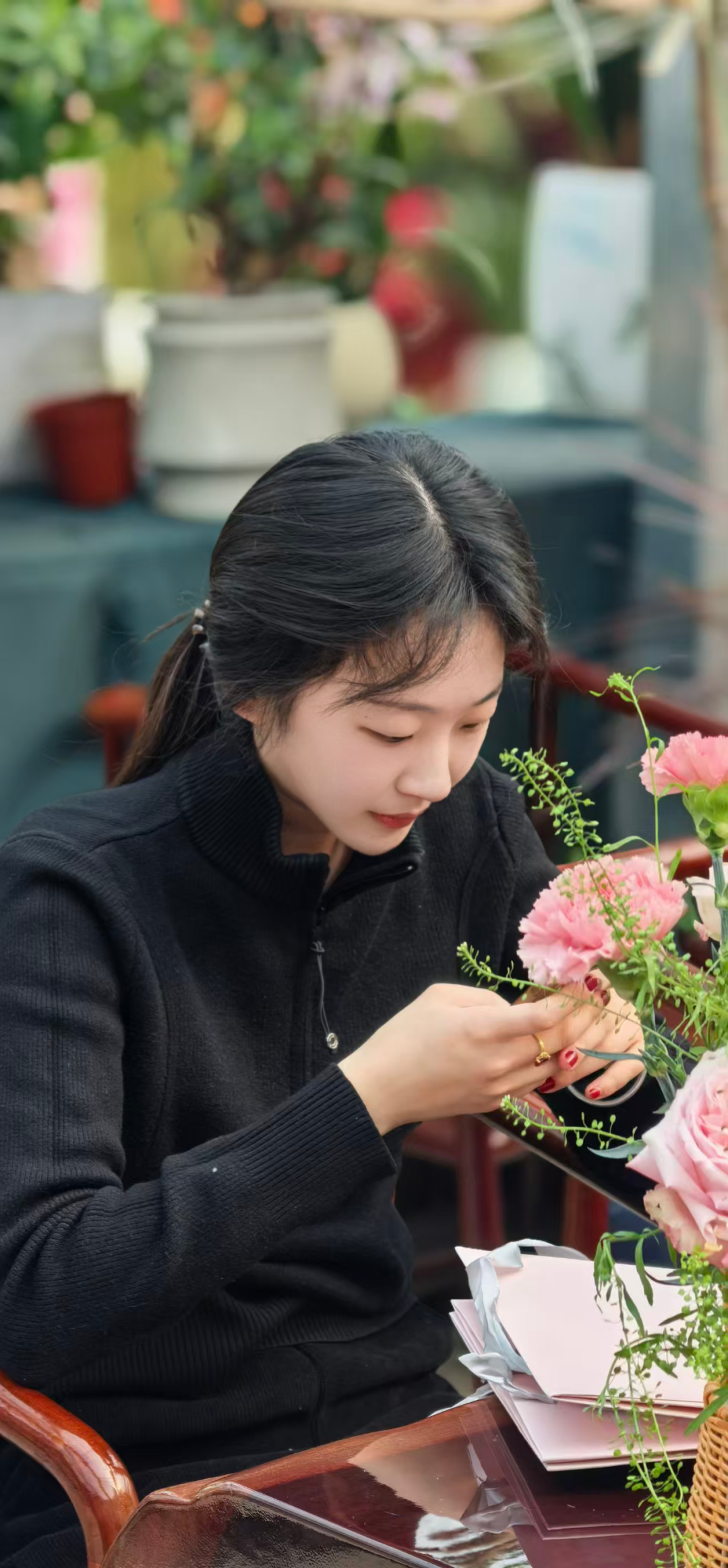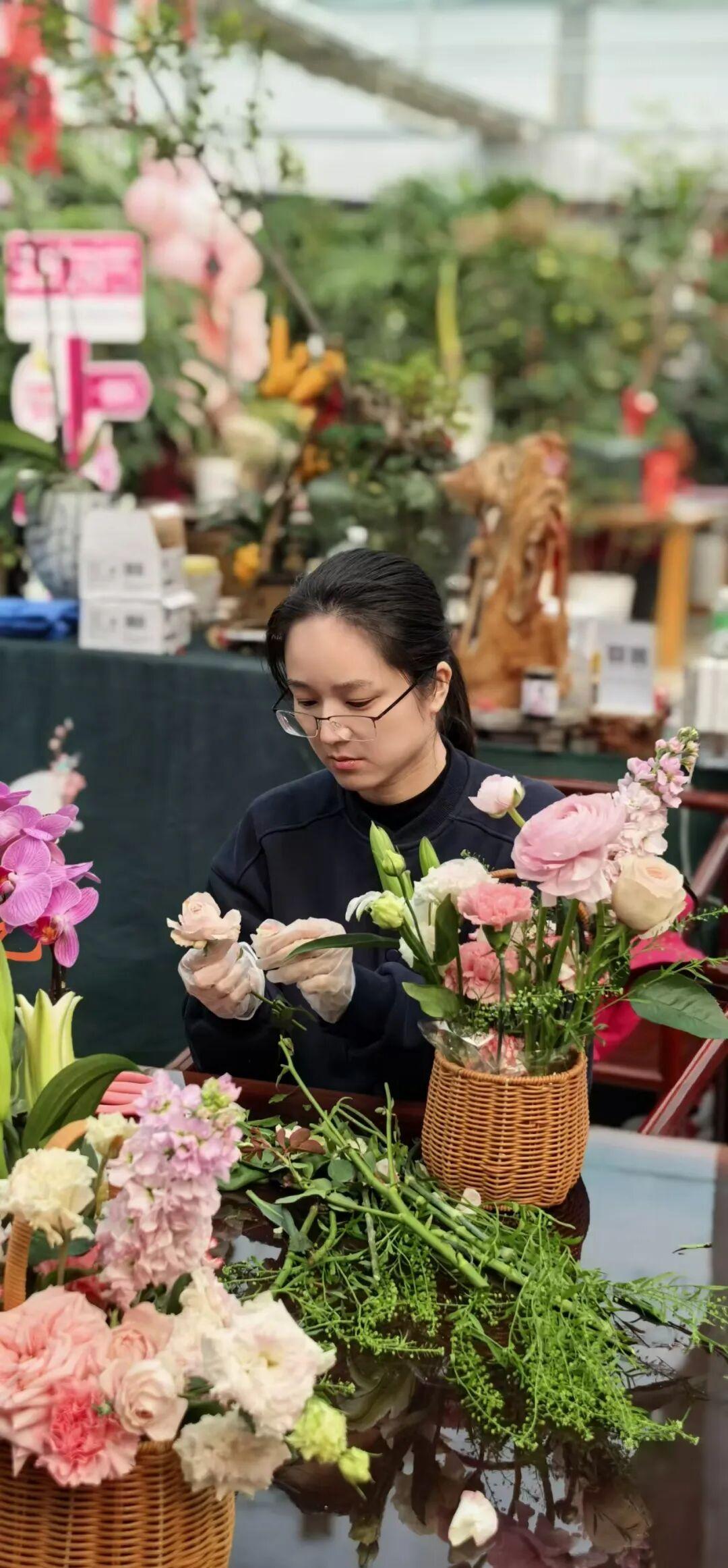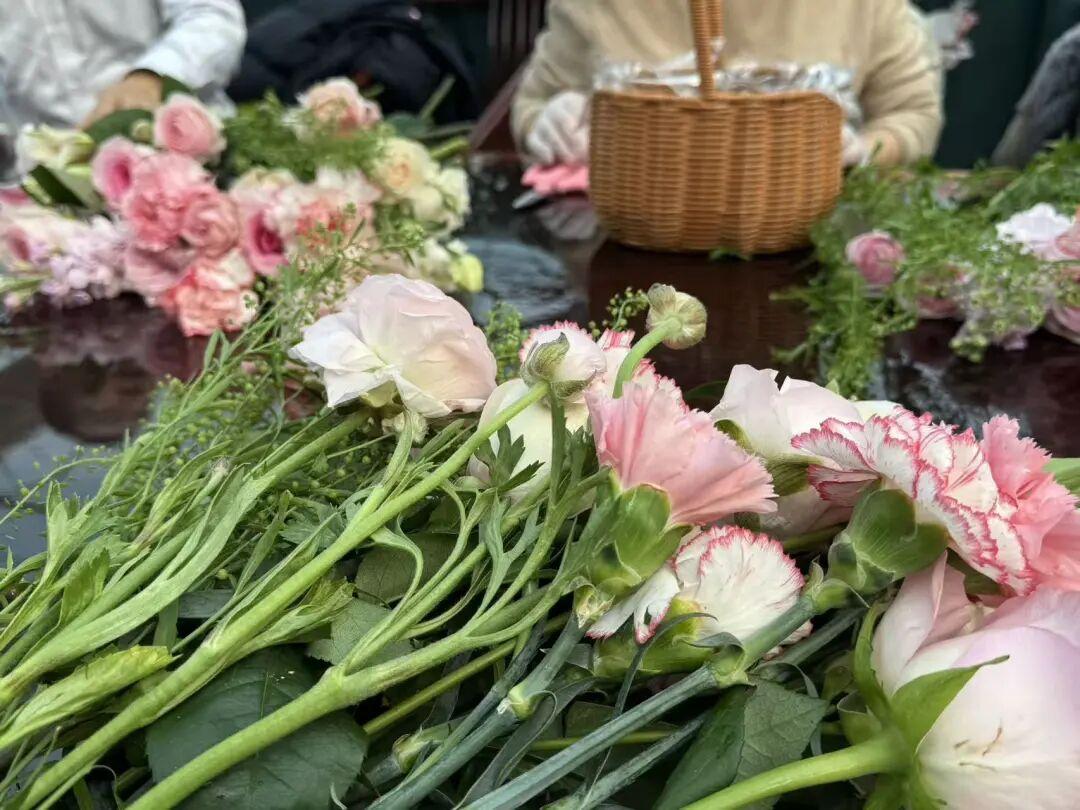 这满眼的春色,这满目的朝气,看着看着,心里忽然生出一点感慨:这世上的人,大约可以分为两种——一种是种花的,一种是看花的。种花的人懂得根须的走向,知道什么时候该浇水,什么时候该松土,什么时候该施肥;看花的人只看见花开时的热闹。可其实,每个人心里都有一块土,都需要自己种、自己看。毕竟,植物是不慌不忙的,它们只管长,不问花期。我低头摆弄着花材,柔嫩的触感让我心头一软,人若能在忙碌里偷得这样一点不慌不忙,种出自己的花,那便是莫大的福气。