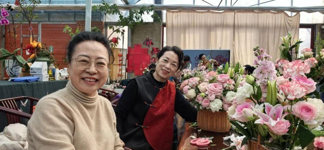 插花的桌上摆满了花材:玫瑰红红地艳着,康乃馨粉粉地挤着,洋桔梗白得像刚从云里摘下来,白的瓣子微微卷着边,像刚睡醒的丫头,还有些我叫不出名字的绿枝,油亮亮地伸展着。来的都是各界的女子干事、秘书长、会长,平日里见面,多半是在会场里谈工作,今日却都换了模样,像是被这满眼的绿意泡软了,眉眼都松弛下来,嘴角挂着浅浅的月牙。一个个挽着袖子,围着那些花,眉眼间净是活泼的少女气。