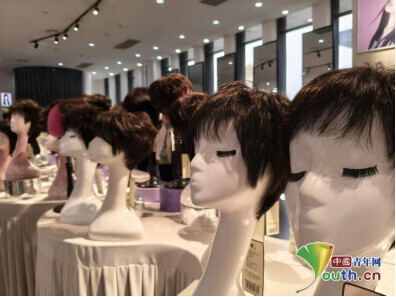 展厅内假发陈列。中国青年网见习记者王煜鑫 摄