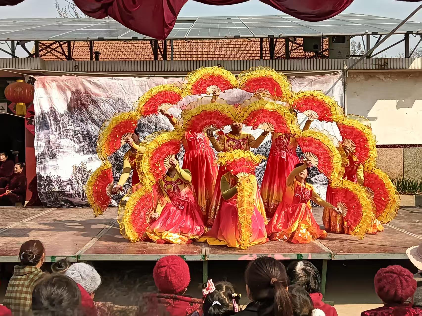活动现场,彩绸飘扬,锣鼓喧天。舞台之上,红扇翻飞、衣袂翩跹,喜庆热烈的《张灯结彩》舞出了春日的蓬勃与节日的欢腾,演员们身着红金渐变的喜庆舞衣,手持镶金边的彩扇,灵动的步伐与整齐的队形将热闹祥和的氛围传递给每一位观众。刚柔并济的《中国功夫扇》尽显中华武术神韵,演员们精神矍铄,一招一式间既有武术的刚劲,又有扇舞的飘逸,展现出昂扬向上的精神风貌。温情满满的《福到咱家》则用轻盈欢快的舞步,饱含着对美好生活的热爱,传递出阖家安康、福气盈门的美好祝愿。舞台之下,观众们围坐观赏,掌声与喝彩声此起彼伏,老人和孩童笑靥如花,沉浸式感受着传统民俗的独特魅力。