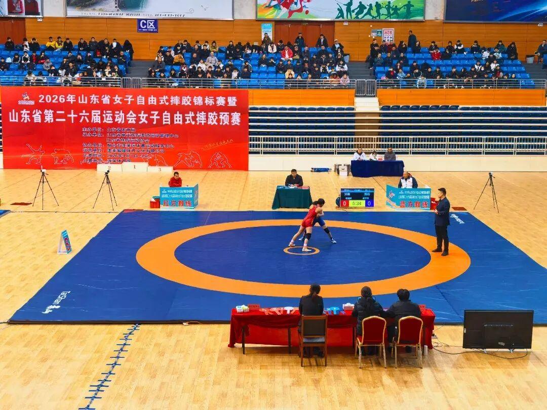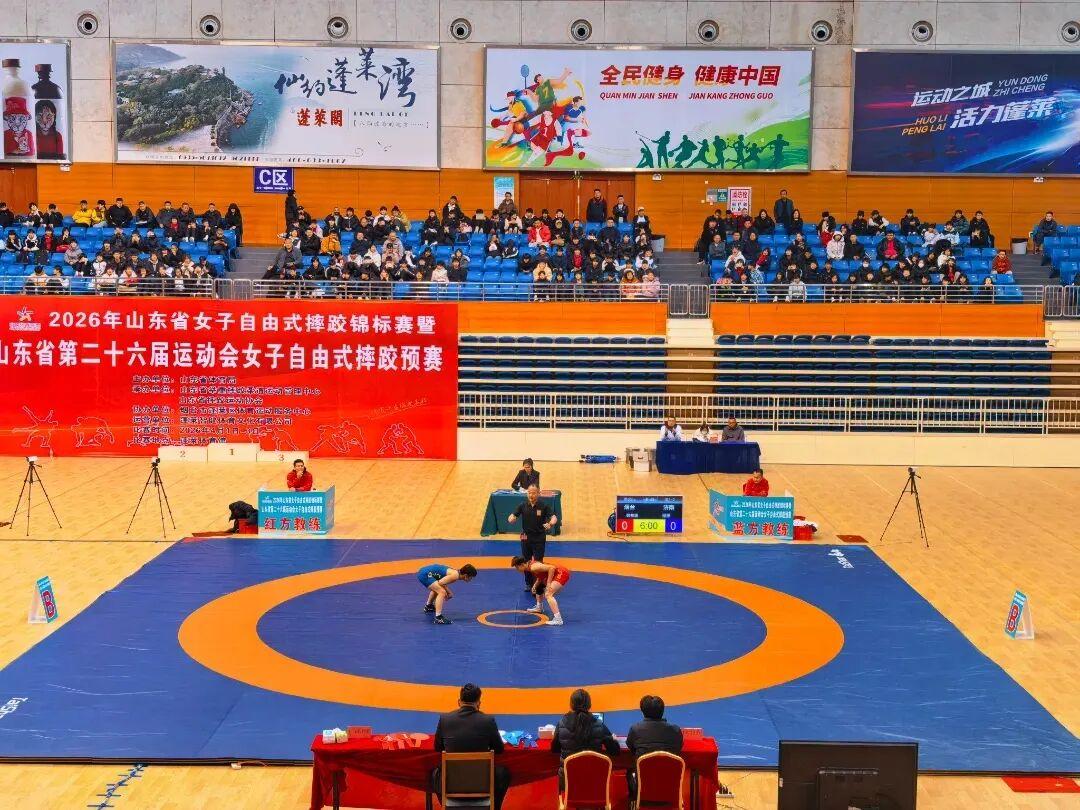 4月3日,2026年山东省女子自由式摔跤锦标赛暨山东省第二十六届运动会女子自由式摔跤预赛在蓬莱体育馆圆满落下帷幕。历经3天热血鏖战、295场精彩对决,全省15支地市代表队的巾帼摔跤健儿齐聚仙境蓬莱,以力量为刃、以拼搏为甲,在跤垫上绽放青春光彩,为蓬莱献上一场震撼人心的竞技体育盛宴。