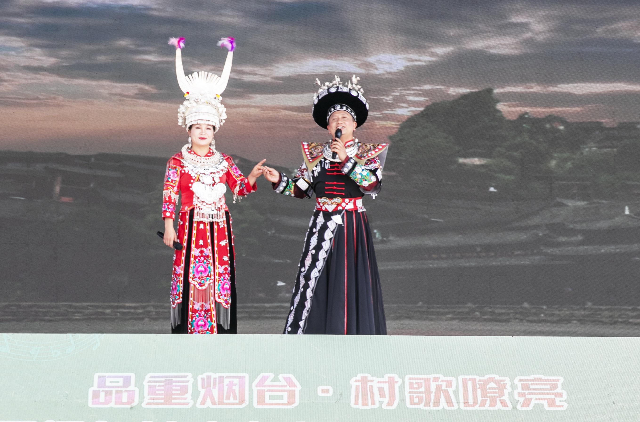 来自贵州剑河县的歌手,带来原生态苗族歌曲《游方飞歌》,展现出不同地域乡村文化的交融之美;2025烟台村歌大赛获奖选手“油条哥”修文军、刘翠莲、杨玉刚依次登台,用充满烟火气的歌声演绎了对家乡的热爱;村歌大赛主题曲《村歌唱起来》,将现场氛围推向高潮。