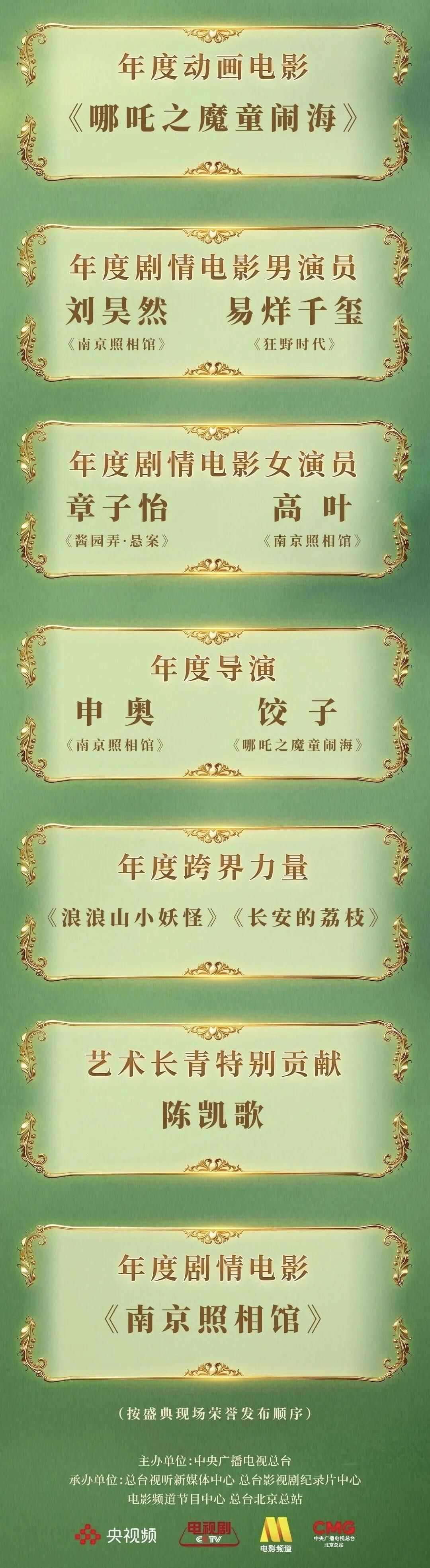 动画巨制《哪吒之魔童闹海》荣获年度动画电影、年度导演及年度视觉效果三项荣誉。出品人王长田表示,再高的电影票房纪录都会被打破,只有好的电影才会永远留在观众的心中,无法被取代。