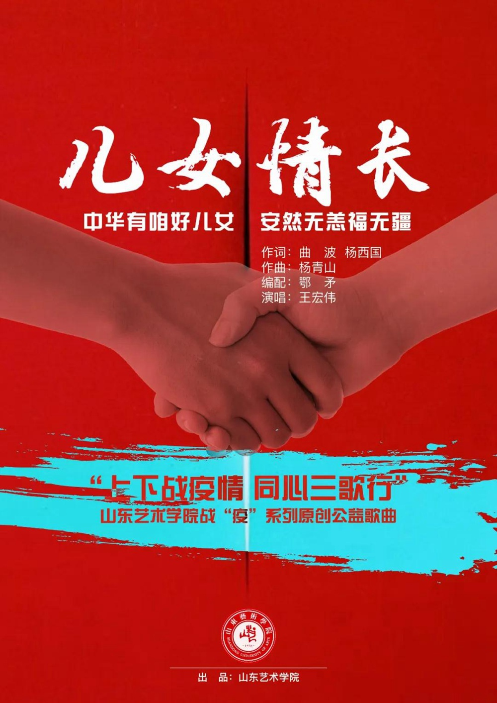 “你也儿女情长,我也儿女情长,正是共担风雨时,好儿好女挺脊梁。舍小家顾大家,无愧家国担当,中华有咱好儿女,安然无恙福无疆。”2月26日,山东卫视推出由中共山东省委宣传部、山东艺术学院出品,山东卫视传媒有限公司制作的原创公益歌曲《儿女情长》,向抗击新冠肺炎疫情的一线医护工作者致敬。