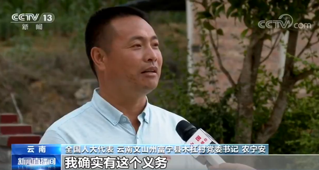 全国人大代表 云南文山州富宁县木杠村党委书记 农宁安:你一人富不算富,要全村富才算富,我是一名党员,我确实有这个义务来尽我的能力带领下这个村。