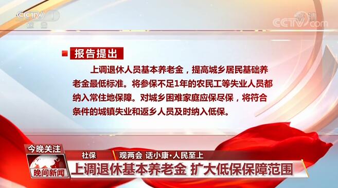 社保:上调退休基本养老金 扩大低保保障范围