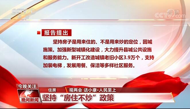 住房:坚持“房住不炒”政策