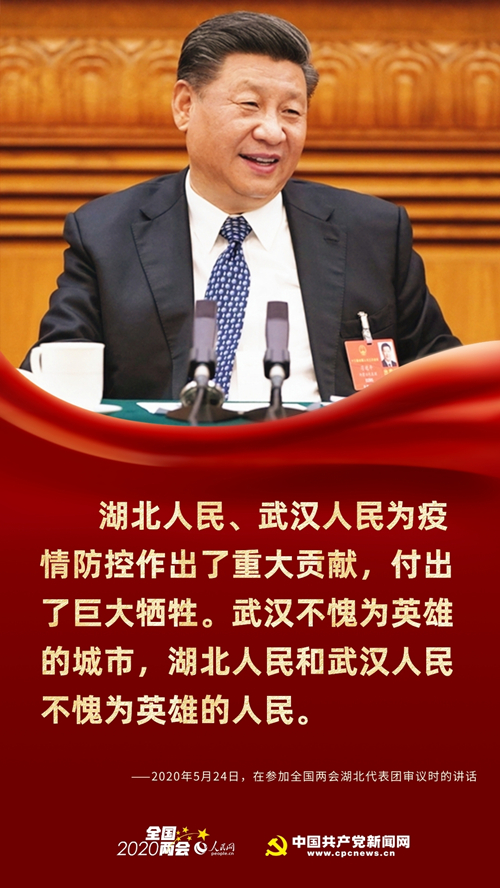 “刚才听了几位代表的发言,我也十分感动。”面对湖北代表团的代表们,习近平再一次强调:“湖北人民、武汉人民为疫情防控作出了重大贡献,付出了巨大牺牲。武汉不愧为英雄的城市,湖北人民和武汉人民不愧为英雄的人民。”