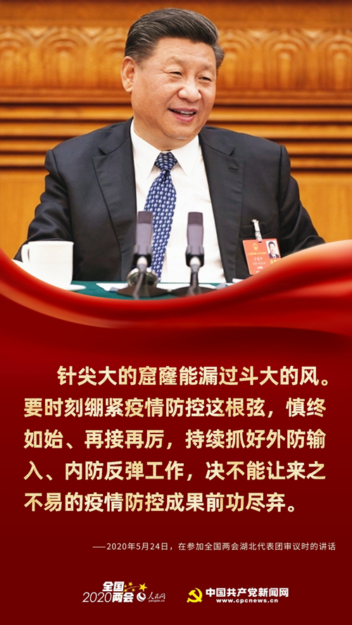 “针尖大的窟窿能漏过斗大的风。”在湖北代表团审议现场,习近平强调,要时刻绷紧疫情防控这根弦,慎终如始、再接再厉,持续抓好外防输入、内防反弹工作,决不能让来之不易的疫情防控成果前功尽弃。