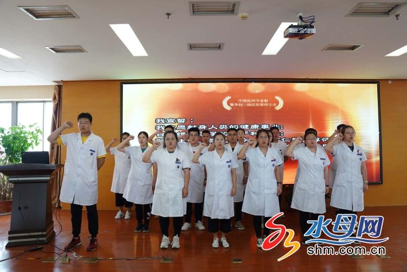 随后,烟台海港医院进行了创立三级医院誓师大会,“创建三级医院的想法由来已久,海港医院从1994年成为二级甲等医院,至今已16个年头,在这期间,医院不仅顺利通过了二级医院的复审工作,更是发生了翻天覆地的变化,医院从全国各地引进了大批专家人才,强化医院规范化管理,转变服务理念,提高医疗质量和诊疗技术水平,保障医疗安全,加大设备投入,完善专科设置,使医院各项工作得到长足的发展。”烟台海港医院院长孟凡学强调,医院正处在转型发展的关键时期,必须站在医院远期发展高度看待这次创建工作。三级医院创建的核心内容在于安全、质量和服务,并且对推动医院向着标准化、规范化、科学化、现代化医院发展具有重大的现实意义,更有利于造福更多周边百姓。“在医师节这一特殊日子里,进行创建三级医院的启动仪式,更有仪式感,可以使医院的医护工作人员们进一步感受烟台海港医院一路走来发展壮大的历史积淀和文化底蕴,对医院的未来充满希望,通过青年医师们铿锵有力的庄严宣誓,也会使他们油然生出坚定守护人民健康的责任感与使命感,希望可以激励大家不断学习,终其一生所学来守护人民生命健康。”