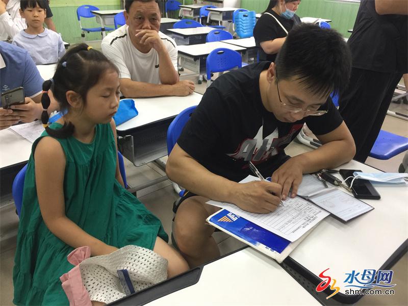 在报名现场,记者看到共设置了六个等候室和报名室,家长在等候室领取表格,填好资料,随后到报名室进行资料审核和信息录入。每个教室内都有老师协助家长完成资料填写和报名。