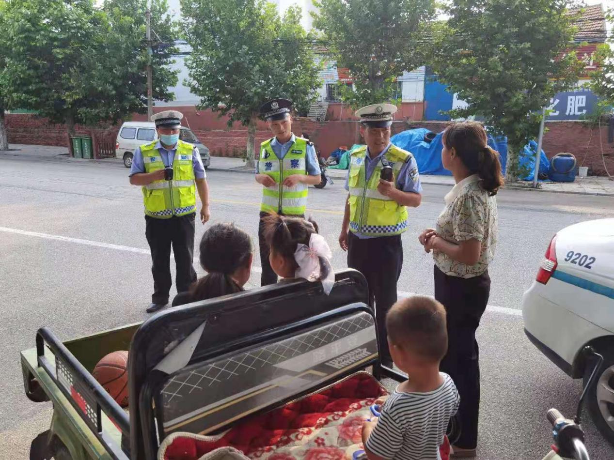 7月8日下午,五中队民警在黄草线巡逻时,在栾家河村处发现一辆电动三轮车上拉着三个儿童正在行驶,存在极大安全隐患,民警立即指挥该车靠边接受检查。经查驾驶人张某拉着自己及邻居的两个孩子出去办事,被民警当场查获。民警依法扣留了车辆,对驾驶人的违法行为进行相应处罚、教育。