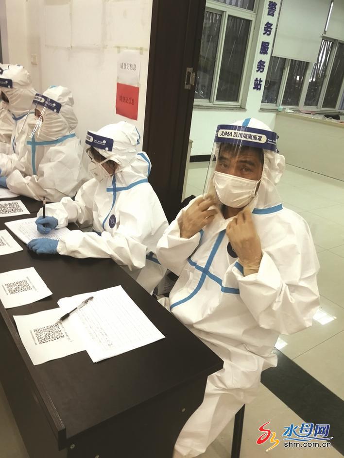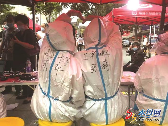 在检测现场,医护人员、社区工作者、机关干部职工、志愿者组成的力量,同样让人无比动容。“我们这个点,在医护人员紧缺的情况下,办事处和社区紧急联系了南尧富顺医院,人家二话没说,不仅医护人员来了,还带来了物资,我的口罩就是人家给的。6名护士在白天上班的情况下,又坚持工作了一个晚上。”黄侃说,在一整夜的维持秩序后,凌晨4点钟左右,来检测的百姓不多,几个小护士实在受不了了,就暂把防护服脱了,“你没看那个脸,整个就跟水泡了一遍似的,当时我们眼泪就在眼圈里转转……世回尧派出所的警官,后来才知道他们的姓名,是芝罘公安分局的高磊和田怡,从昨天早晨8点喊到今天早晨8点多,一直不厌其烦地拿着大喇叭嘱咐:请保持好距离,口罩要戴好……”