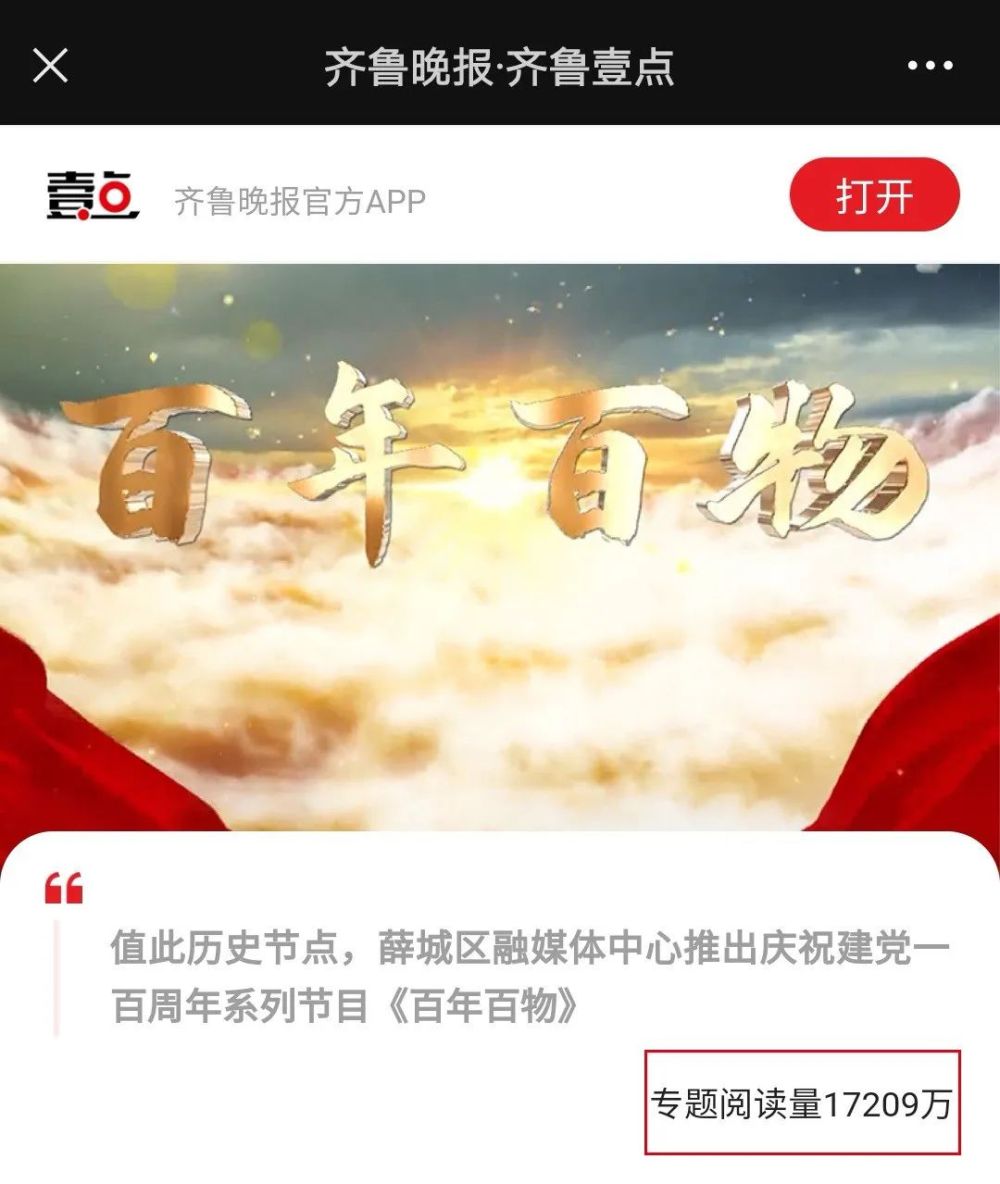 2021年是建党100周年。值此历史节点,山东省枣庄市薛城区推出大型融媒寻访纪实报道《百年百物》,通过实地探访的形式,以物证史,以物见人,以物叙事,以物鉴今,让一件件沉睡的物件开口“说话”,挖掘党的历史,传承红色基因,闯出了一条县级融媒体平台用活身边红色资源、讲好本土党史故事、传递时代好声音的“薛城路径”。