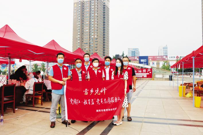 疫情就是命令,开战即是决战。海阳市3000余名市直机关党员充分发挥先锋模范作用,以“党支部领航‘雷乡先锋·红助四季’为群众办实事”活动为载体,迅速下沉到基层各个工作岗位,与镇区街道和村(居)干部、志愿者形成一股强大合力,让党旗在抗疫一线高高飘扬。