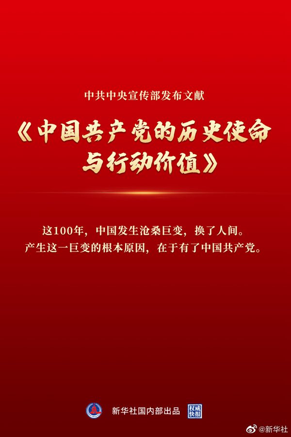 新华社北京8月26日电 中宣部26日发布文献《中国共产党的历史使命与行动价值》。