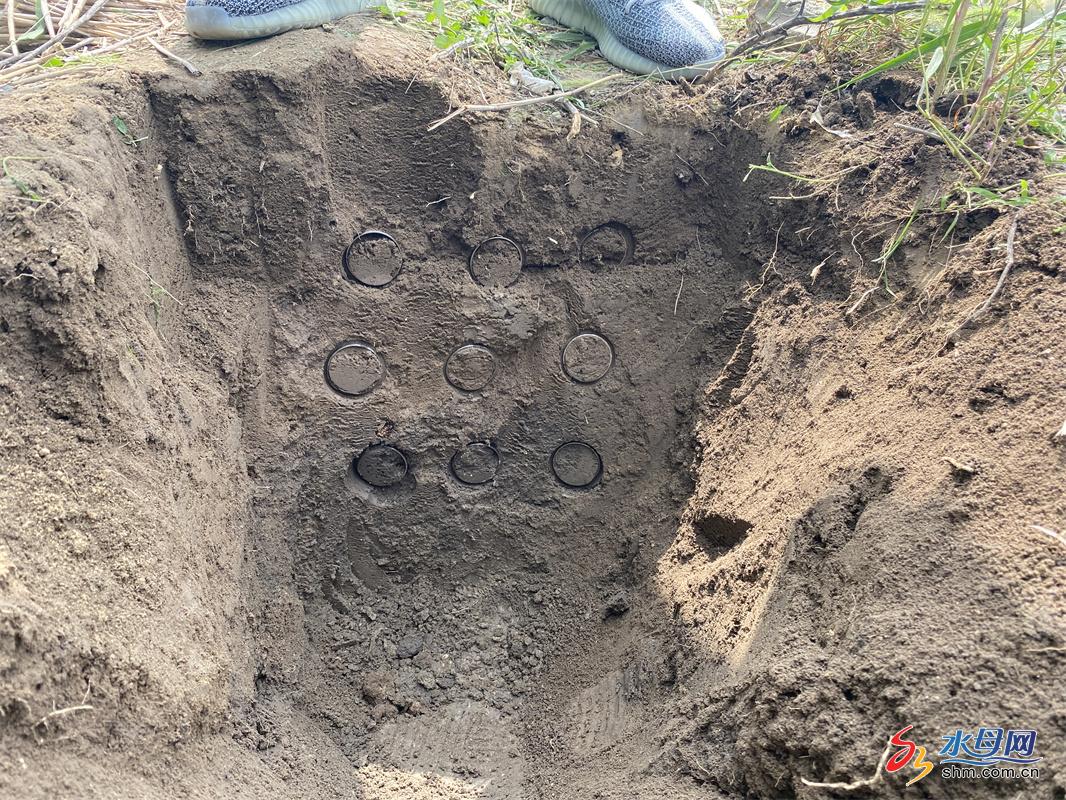为提高工作效率,水文局工作人员分两队分别前往张星镇、夏甸镇、毕郭镇、郭家店镇、沙河镇、驿道镇等地的六个监测点进行取土工作。在每个监测点,工作人员先是选取合适位置,将采样点表土铲平,采用剖面开挖水平取土法开挖取土坑。然后按土壤垂直剖面层次,自上而下用环刀在每层的中部取样,提取出不同土层深度的土壤。取出的环刀两端土壤要用小刀削平,确保土壤容积一定,再将土壤全部转移到已知重量的铝盒中。最后工作人员用保鲜膜将铝盒包好确保样品的完整性。