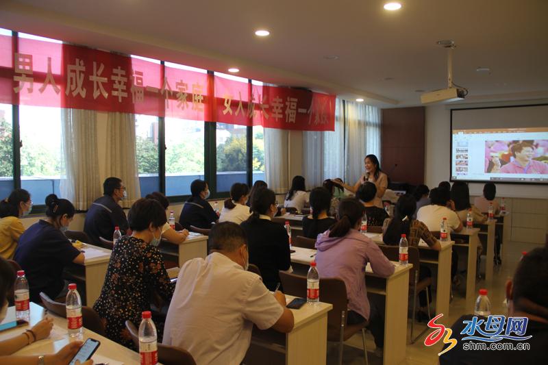 水母网9月9日讯(通讯员 书芹)孩子的学习成长对于每一位家长来说,是最重大的责任与最关心的家事。男人成长幸福一个家庭,女人成长幸福一个家族。为了帮助会员推行有效的家庭教育,促进孩子进步,9月8日下午,招远经济技术开发区商会在开发区党群服务中心举行家庭教育沙龙,张梦宸老师在招远市经济技术开发区商户倾情开讲!60余名会员企业负责人及家属集中聆听了讲座。