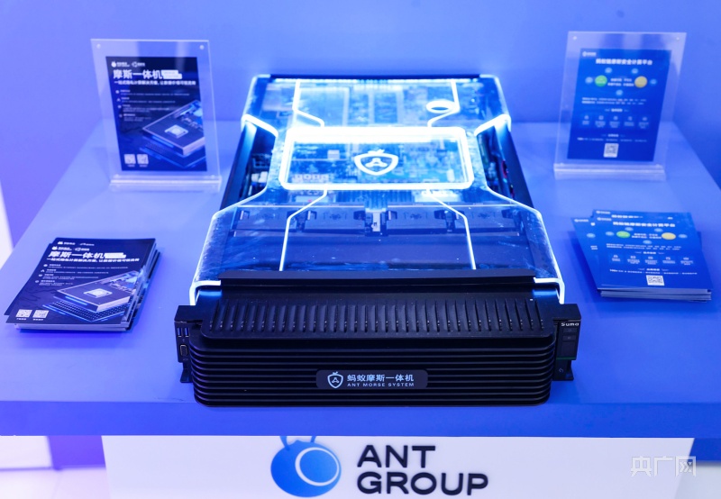 图为蚂蚁集团展示的“摩斯隐私计算一体机”(央广网记者万玉航 摄)