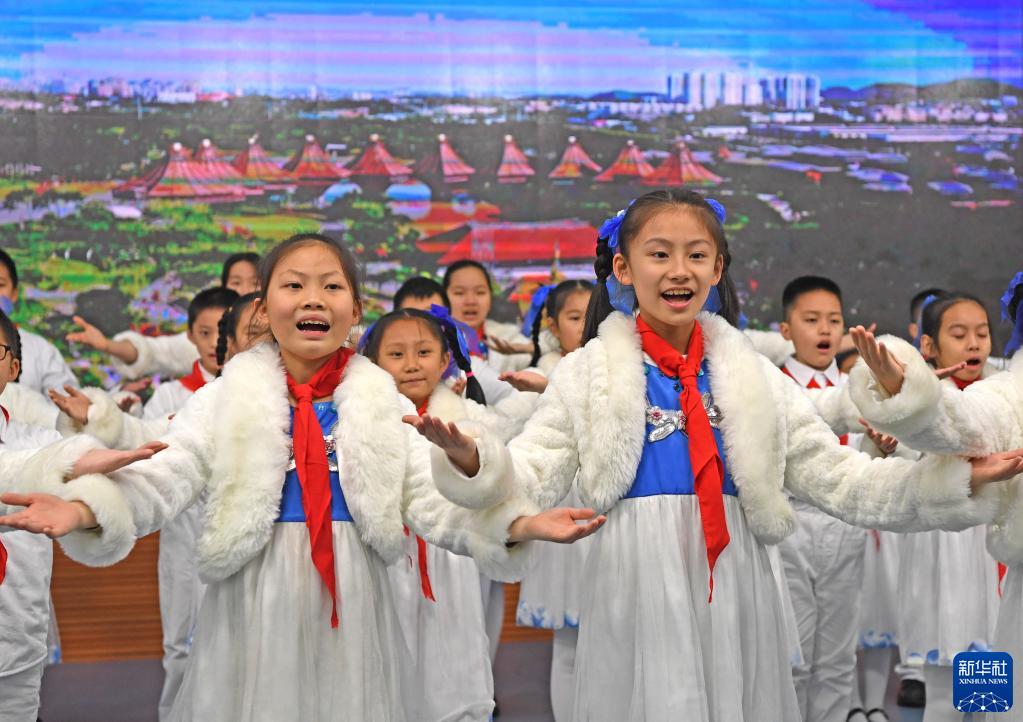 2月21日,孩子们在广西南宁市滨湖路小学合唱歌曲。