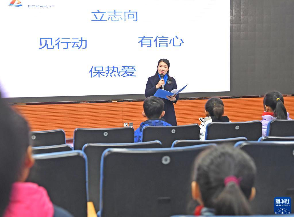 2月21日,广西南宁市滨湖路小学校长谢小燕在给孩子们上思政课。