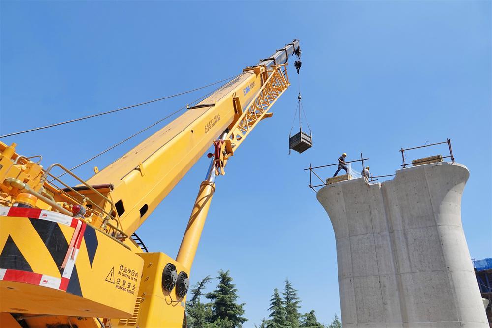 在潍烟高铁6标段福山特大桥建设现场,建筑工人正进行墩身垫石浇筑施工。YMG全媒体记者 唐克 通讯员 常文浩 郭鑫雨 摄