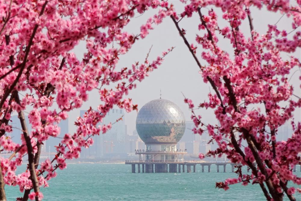春花掩映下的黄海明珠。YMG全媒体记者 唐克 摄