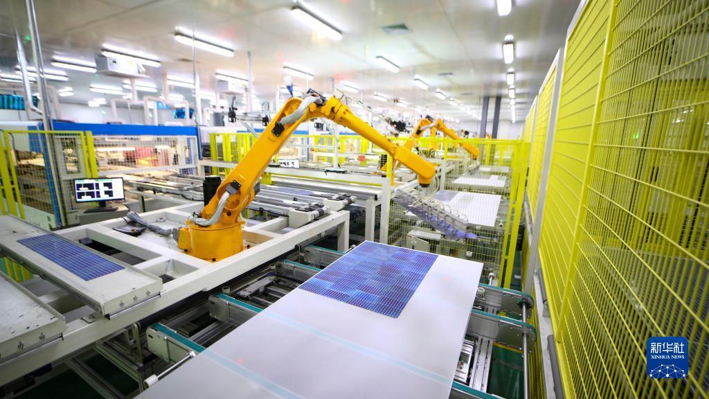 9月17日拍摄的山东省东营经济技术开发区润马光能科技有限公司太阳能电池板生产线。