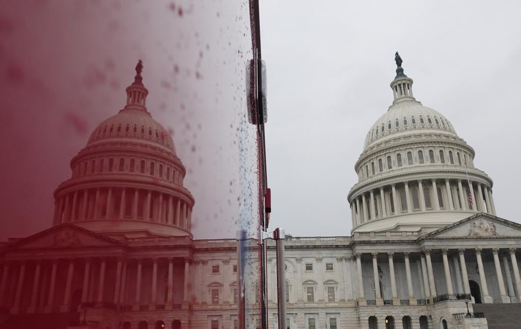 这张2018年12月28日拍摄的资料照片显示,在美国华盛顿,国会大厦映在一辆汽车上。新华社记者刘杰摄