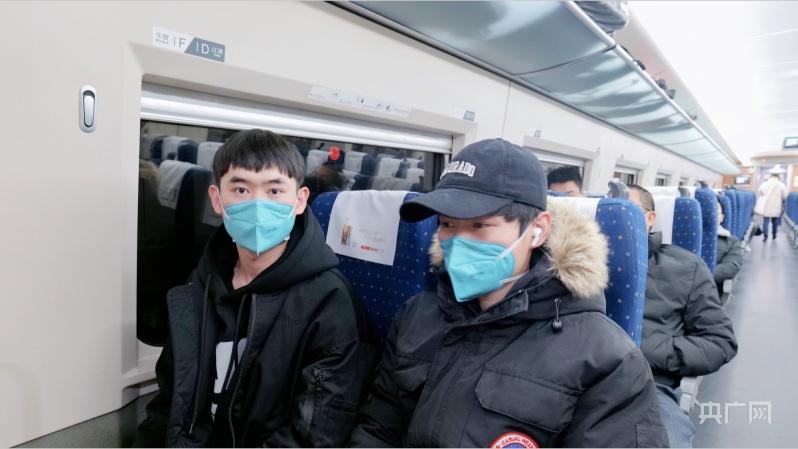 北京地区首趟春运列车乘客(央广网记者 朱冠安 摄)