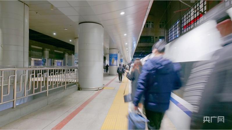 北京地区首趟春运列车旅客前往车厢(央广网记者 朱冠安 摄)